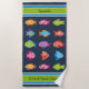 Celebrate summer vacations spent lounging on the sand or trips to the local pool with this personalised beach towel that features colourful tropical fish, coastal stripes, a customisable name, plus space for additional text. This unisex design is youthful and fun, and it will appeal to boys and girls and children of all ages. Add a name plus your own text to create a unique gift for kids who enjoy fun in the sun.