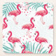 Tropical flamingo and leaves, summer pattern. square paper coaster