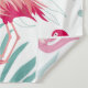 Colourful flamingo and leafs dance in rhythm. Summer's tropical embrace.