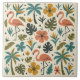 Tropical Flamingo and Palm Tree Pattern Ceramic Tile