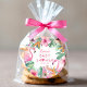 Seal your favours with tropical flair using this flamingo baby shower sticker! Featuring lush watercolor florals, vibrant palm leaves, and a pair of playful pink flamingos, this round sticker is perfect for bags, boxes, or envelope seals. Personalise it with the guest of honour’s name and shower date to complete your summer or luau-themed celebration.