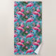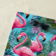 This beach towel is shown in a lovely tropical flower flamingo print.