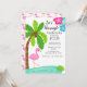 Let's Flamingle with this birthday invitation. There's a flamingo standing in water underneath a big, beautiful palm tree that. Personalise with your party information.