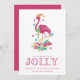 Cute Florida Christmas card featuring pink Christmas flamingo "'Tis the season to be jolly" design. Customised with your short message and names. This Florida beach Christmas card reverses to a solid pink design on the back.