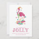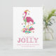 Cute Florida Christmas card featuring pink Christmas flamingo "'Tis the season to be jolly" design. Customised with your short message and names. This Florida beach Christmas card reverses to a solid pink design on the back.