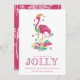 Cute Florida Christmas card featuring pink Christmas flamingo "'Tis the season to be jolly" design. Customized with your short message and names. This Florida beach Christmas card reverses to a pink and white palm tree design.