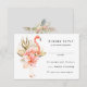 Boho wedding reception reply card features a pink flamingo adorned with protea and other tropical flower. Perfect for tropical, Safari, zoo themed weddings and events.