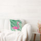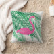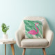 Tropical Flamingo & Palm Leaves on White Cushion