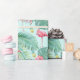 This gift wrap design features a gorgeous pattern of flamingos surrounded by abundant tropical foliage, hibiscus blooms and pineapples on the background colour of your choice. This gift wrap also coordinates with our Sweet 16 invites and party supplies listed under ID922. Search ID926 to see other products with this colourful design.