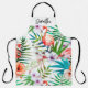 Beautiful tropical accent apron with tropical elements in watercolor: flamingo bird, orchids, hibiscus flowers and palm leaves, makes a great gift for her.
