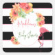 Tropical Flamingo Pink Black Stripe Baby Shower Square Sticker