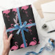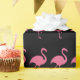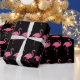 Pink flamingo pattern including pink flamingos against a black background in all over animal print pattern gift wrap paper. Wrap your gifts in style with this tropical design that says beauty all over it. Designed as gift wrap paper in colours and design that is stylish and decorative.