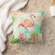 Tropical Flamingo Watercolor & Geometric Pattern Cushion