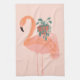 Tropical Flamingo with Potted Plant Hand Drawn Tea Towel