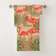 Hang a whole flock or just one! The choice is yours on these brightly coloured flamingo towels and washclothes. Shades of soft pink, coral, turquoise, and earthy green will add a tropical, yet elegant, touch to your bath. Art Deco design is dynamic against the graceful majestic birds.