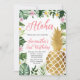 Tropical Floral Aloha Birthday Gold Pineapple Invitation