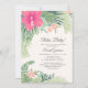 Invite your guests to paradise for a day with this retro tropical design. Featuring tropical leaves and flowers in pinks, oranges, and greens and a stylised rattan pattern on the back, this design brings to mind a fun, sunny tiki party or luau. Perfect for your casual beach affair, wild pool party, or destination celebration in the tropics. Shop the collection today for matching stationery, and say "Aloha" to the perfect day!