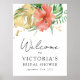 Welcome guests to the bridal shower with this beautiful tropical floral sign that's easy to customise with the bride's name and the date.