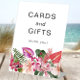 Tropical Floral Cards and Gifts Pedestal Sign. Keep things organised and stylish with this Cards and Gifts Tabletop Sign, featuring vibrant watercolor palms and florals in fuchsia, blush, and lush green tones. Whether displayed at the entrance or on your gift table, it helps guests know exactly where to leave their thoughtful tokens. Personalise the text and layout to suit your tropical theme. Add a touch of coordinated beauty while making your space feel effortless and inviting.