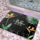 Tropical Floral Foliage Monogram Script Gold Black Bath Mat