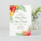 A bright and cheerful botanical design for your tropical wedding! This invitation features succulent flowers in vibrant shades of red, yellow and orange intermingled with bright green palms, all on a crisp white background. The back of the card features a small bouquet in the centre. You can add your details by clicking on the customise link. This item is part of a beautiful matching wedding suite that can be fully personalised.