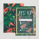 Tropical Floral Gold Foil Frame Wedding RSVP Reply Card