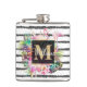 The flask itself is fine. It’s a cheap flask, obviously bought in bulk, however am prepared to overlook that. Given that it is a personalized item, I would have liked to have seen gift boxing instead of the generic packaging. Terrible printing, and/or quality. It’s a cheap, tacky vinyl. It is not cut straight and is also applied in a way that it is overhanging the bottom, causing the glue to catch on items and it will eventually roll and tear, damaging the wrap.