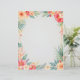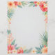 Beautiful tropical flower in pink, soft peach, and cream, with green foliage and palm fronds surround a pale, sky blue center. Bright and cheerful, and perfect for casual correspondence.