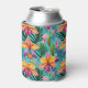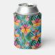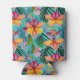 This can cooler is shown in a multi colour tropical floral palms print.