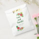 Thank your guests with these tropical floral favour bags. Bright red and pink hibiscus and white plumeria are offset by vibrant tropical watercolor leaves. The font is in a coordinating dark green colour, and can easily be customised with your own special message.