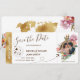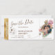 Destination Mexico Beach Wedding Boarding Pass Ticket Gold Plane Save the Date with heart and plane icon with glitter rose gold world map. Add your photo