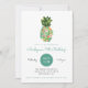 Tropical island watercolor floral pineapple, birthday party invitation. Pretty tropical island flowers and foliage shaped pineapple with trendy teal and black typography design. Back of card features coordinating solid teal colour.
