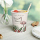 These elegant bridal shower paper cups features hand-drawn tropical flamingo themed illustrations in black ink, showcasing pink flamingos, hibiscus and jasmine flowers, tropical leaves, a pineapple and a tropical drink. Elegant ivory background.