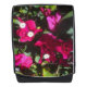 The floral print on this Backpack is an original photograph by ZoeSPEAK of bougainvillea, a coastal, tropical flowering plant or vine. The one pictured in the photo is a deep magenta colour, with tiny bright white flowers, all set against a background of green leaves in light and shadow. The dark, rich colours give this print a retro mood.