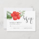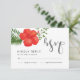 Wedding RSVP template featuring lush tropical foliage and colourful floral accents. Pattern on reverse, of light green fern leaves, is set on the background colour of your choice. Use the provided template to customise your event details. Search ID475 to see other products with this design including matching wedding invitations and more.
