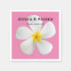 Tropical Floral, White Plumeria on Pink, Wedding Napkin