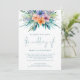 Tropical Florals Florals 3 Photos QR Teal Wedding Invitation