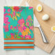 Tropical Florals Teal, Orange, Yellow with Trim Tea Towel