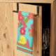 Tropical Florals Teal, Orange, Yellow with Trim Tea Towel