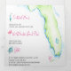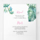 An eco-friendly wedding invite for Florida destination weddings. The outside middle flap features your couples photo. Details are set in a trendy script typography in pink with a traditional serif face font. Designed with a boarder of my original hand painted watercolor monstera palm leaves and hibiscus flower shades of pink, orange, turquoise and green leaves. Personalise each flap with your wedding details and icons of my cocktail, pink flamingo and sea turtle. The hand drawn heart can be moved to your specific location on my watercolor map. Simply click the customise button and click and drag the heart. This all in one invite is perfect for a backyard tiki party, weddings in the Florida Keys, Key West, or any Florida location. To see more trifold watercolor printed wedding invitation suites visit www.zazzle.com/dotellabelle Convo me for personalised wedding invite illustrations.