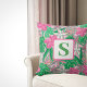 Tropical Flower Monogram Pink White Green Preppy Cushion