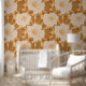 Tropical Floral pattern peel and stick wallpaper on caramel, to elevate your home or apartment decor.