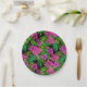 Tropical flowers and plants on black paper plate
