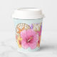 This beautiful paper cup features pink and orange hibiscus flowers surrounded by sea shells with a light blue watercolor wash background. Perfect for a luau or a mermaid party.