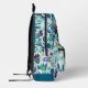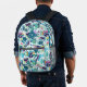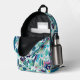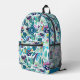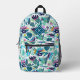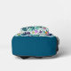 Colourful tropical flowers and leaves in a seamless pattern and a customisable monogram. Dark green solid colour on the bottom of the bag.