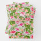 Three sheets of wrapping paper feature tropical pink and coral hibiscus flowers on a light grey background (or any colour you choose.) MORE colours in our store.