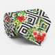 Cool hibiscus and leaves tropical pattern, with black and white modern geometric background.