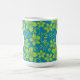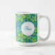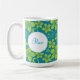 An assortment of tropical flowers in bright yellow overlays turquoise to make this mug the perfect way to start your day. The customised name or message stands out in a white circle. Available in alternate colours with matching products.