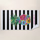 Tropical Flowers Pineapple Black Stripes Beach Towel