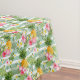 Tropical Flowers & Pineapple On Teal Stripes 2 Tablecloth